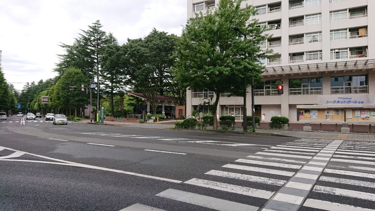 *2 桜ケ岡公園通りから大学病院方面を見る。 左手側に市民会館(トークネットホール仙台)