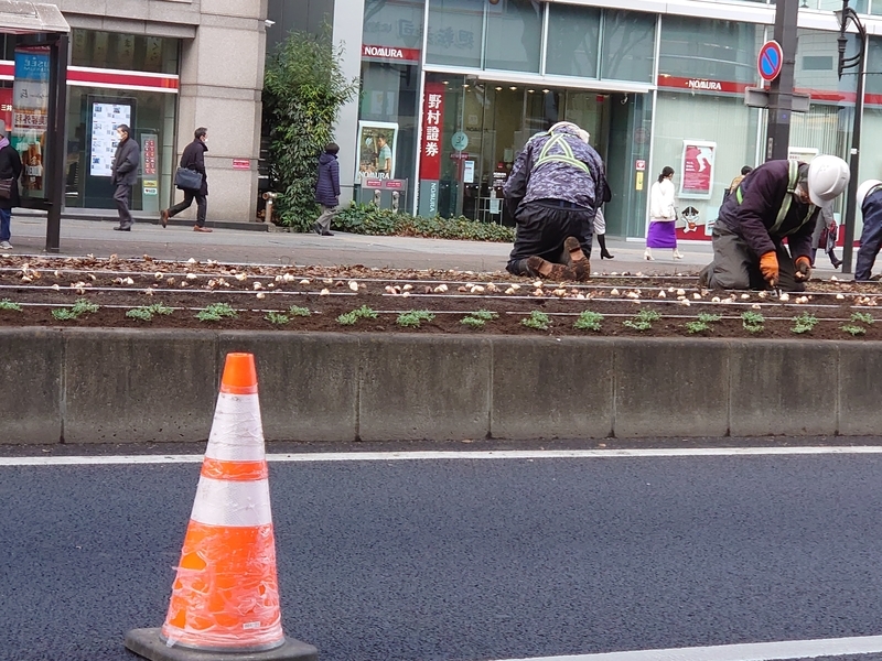 *6 青葉通りで進む花壇整備(転がっているのは花の球根)