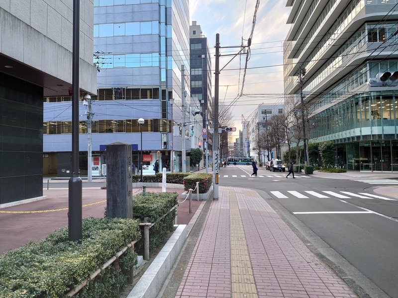 *1 国分町通りから青葉通り方面を見る、辻標の左側は日本銀行仙台支店
