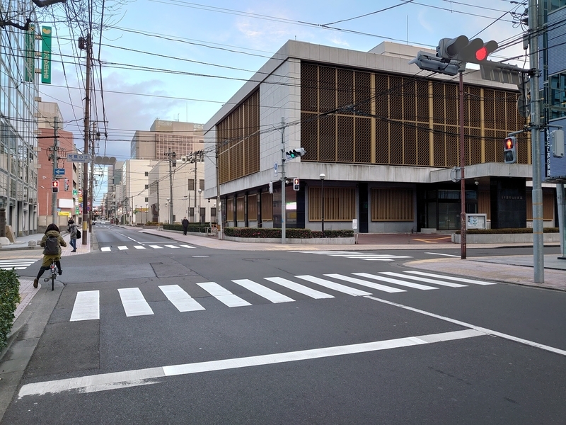 *2 信号機の先はアーケード付近、左側に見えるのは日本銀行仙台支店
