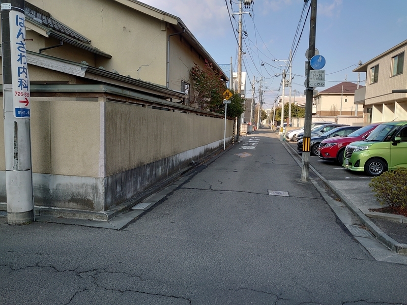 *1 信号機を斜め右側に曲がると八軒小路、左側は新幹線の高架橋