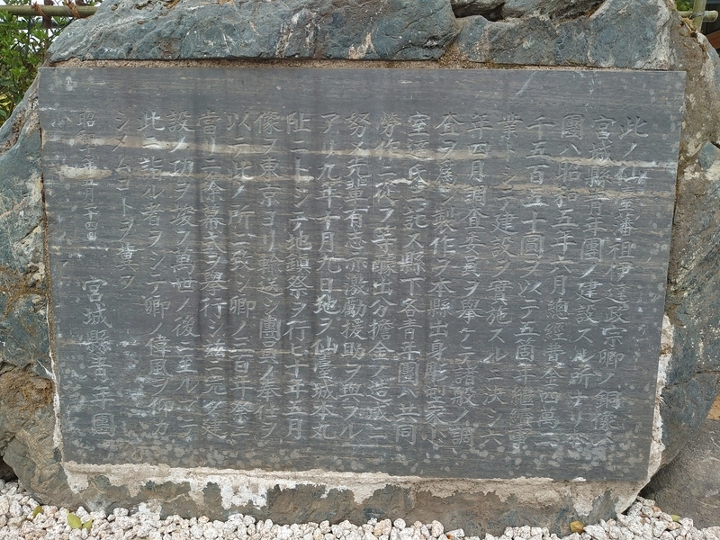 *4 2023.4.15.撮影 *6の右脇にある碑文(青葉山の騎馬像であった時のもの)
